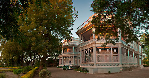 Built in the 1880s as the residence of the Crown Prince of Gondal, the Riverside Palace is a colonial-style building set in gardens beside the town’s river. It has been converted into a heritage hotel with 11 large and high-ceilinged rooms appointed with four-poster beds, old dressers and other colonial—period furniture from the family’s heirloom collection.